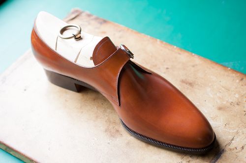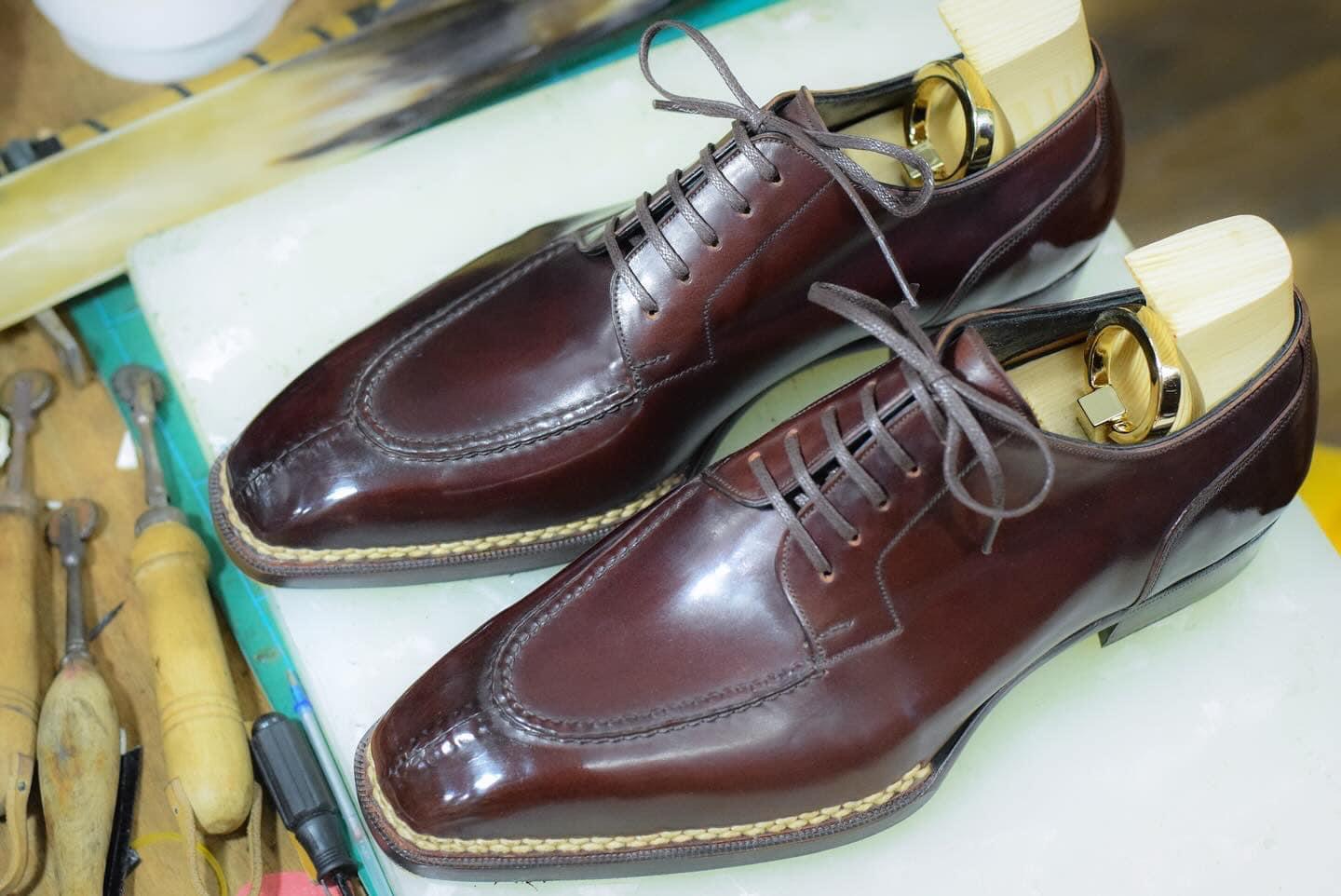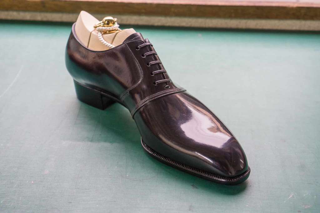 We shape custom lasts, form vamps, set heel counters, cut welts, bevel waists, and finish soles by hand.